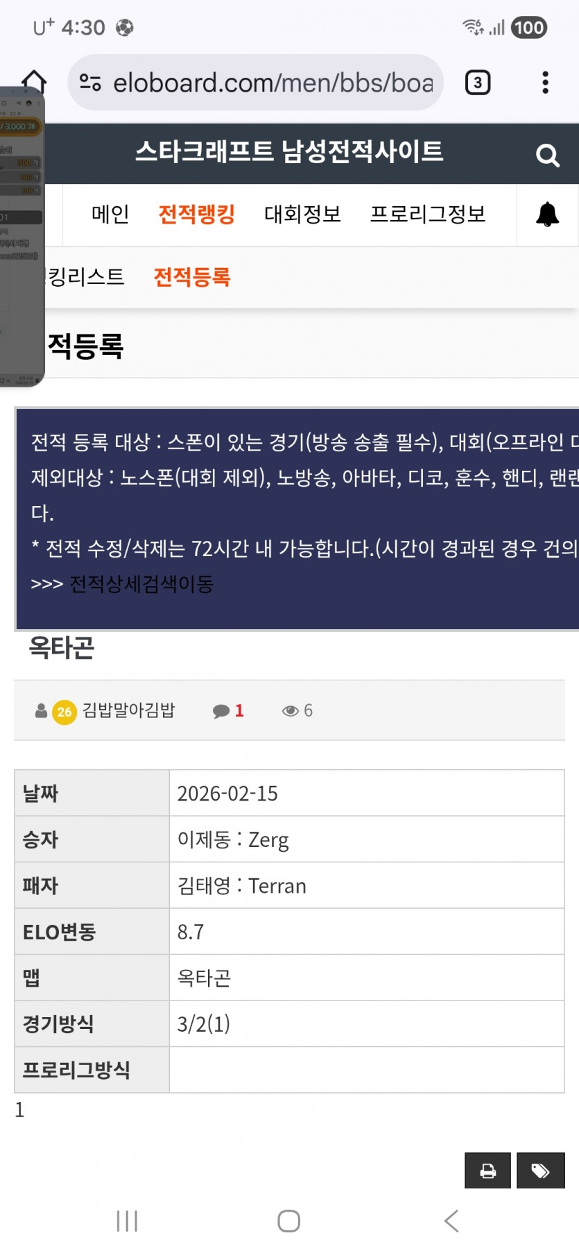 안녕하세요 전적등록 관련해서 문의드립니다.