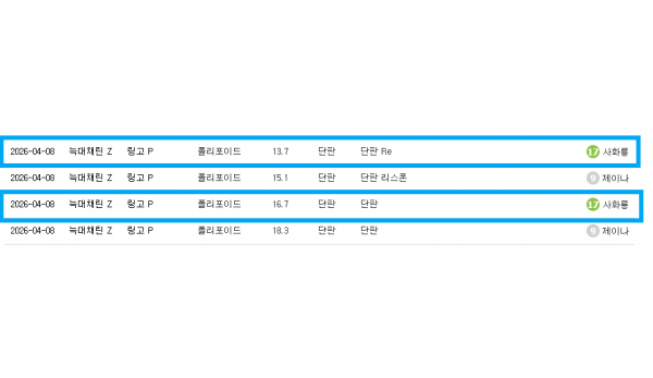 7.4~5일 또해영님 이전 전적이 대량으로 등록된 건