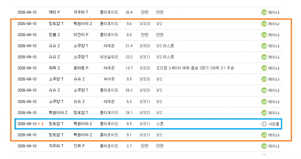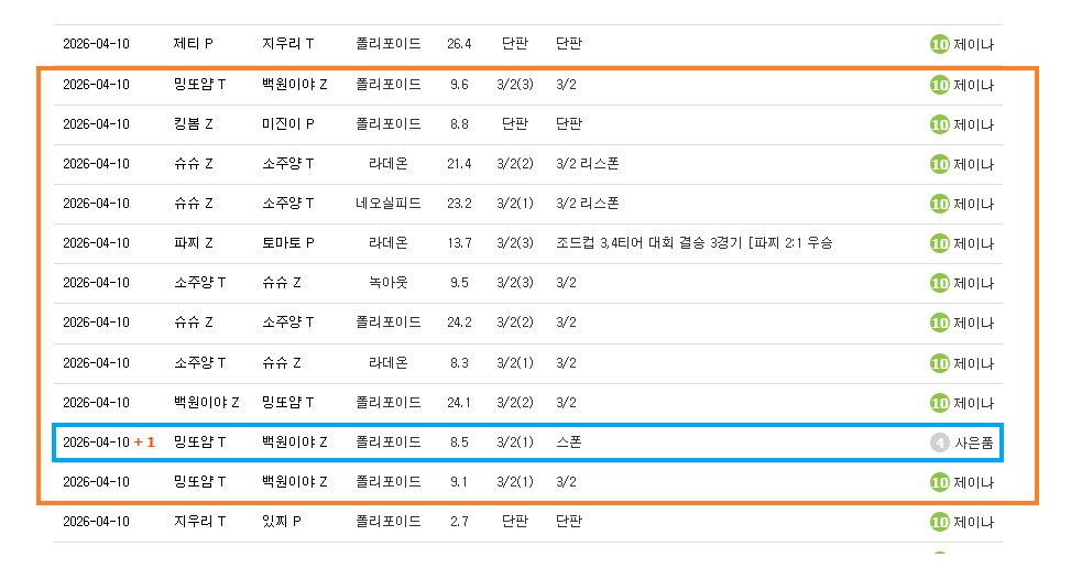 7.4~5일 또해영님 이전 전적이 대량으로 등록된 건